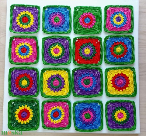 Horgolt színes négyzetek kreatív projektekhez