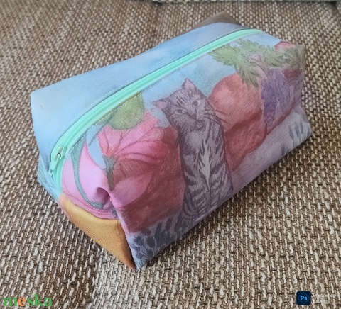 Cica a virágos kertben nagy méretű kozmetikai táska