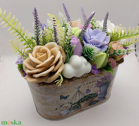 - Anyag/Összetevő szappanalap, szappanszínezék, illatolaj, fapálca, fémdrót, ragasztó, műnövény, virágtűzőhab
