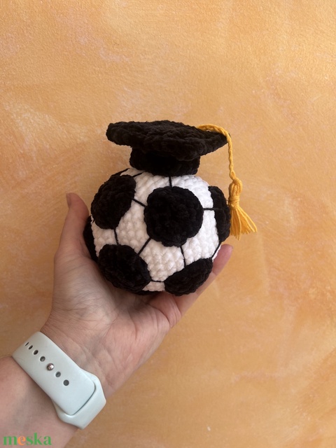 Focilabda diplomaosztó kalappal, csokordekorációnak