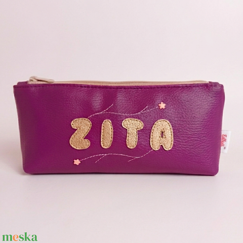 Névre szóló tolltartó szemüvegtok sminktartó textilbőrből 22x9 cm