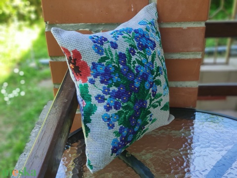 'Tavaszi csokor - Nefelejcs' gobelin hatású pamutvászon díszpárna