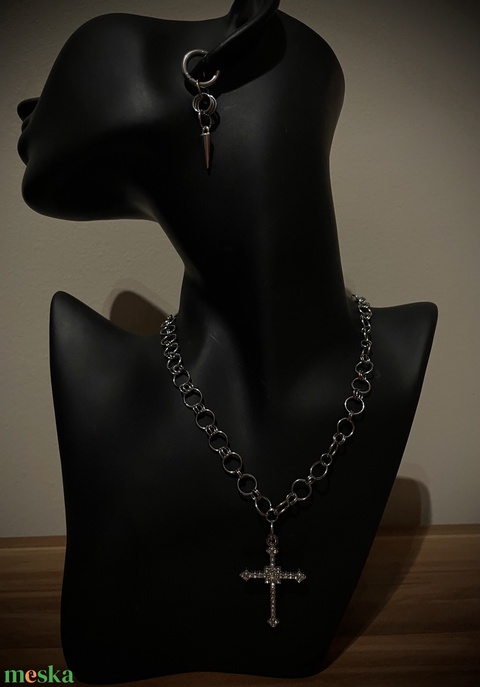 Rozsdamentes acél nyaklánc szett – kereszt medállal