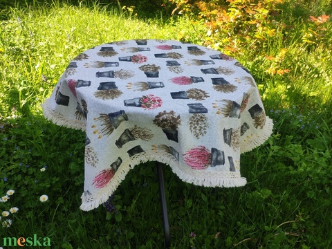 'VIRÁGZÓ TERASZ' rojtos terítő cserepes virágokkal