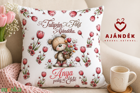 Díszpárna „A Tulipán A Föld Ajándéka Anya pedig az Életé”