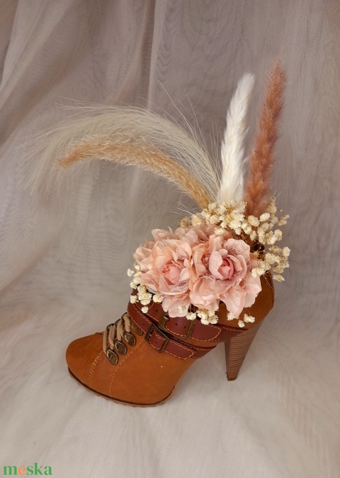 - Anyag/Összetevő cipő, száraz virág, selyemvirág