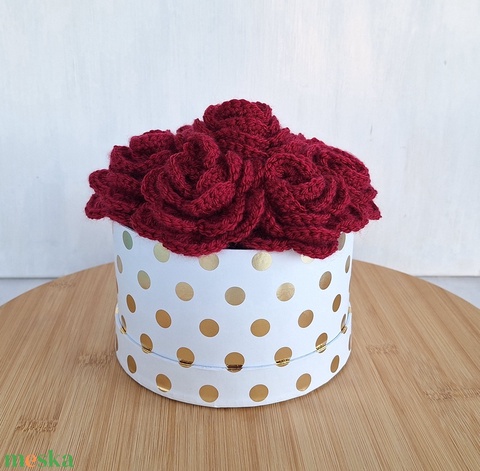 Rózsabox - Virágdoboz horgolt vörös rózsákkal