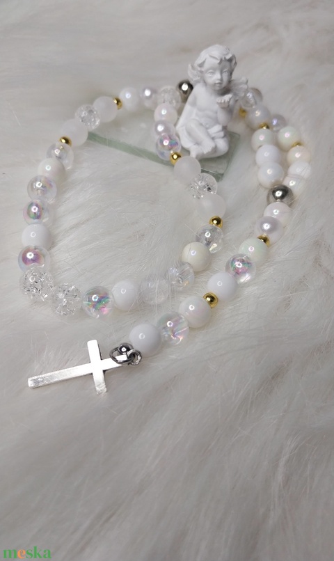 Fehér gyöngy rózsafüzér – angyali tisztaság és védelem.