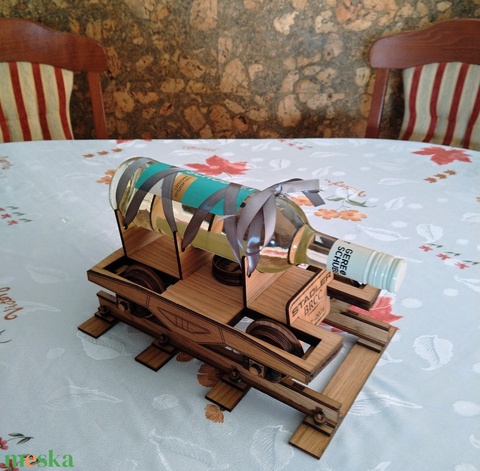 Vasúti bor tartó fából – egyedi, gravírozható ajándék vasút rajongóknak