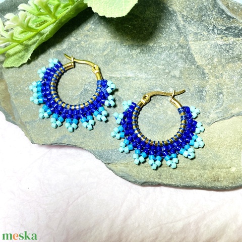 Kék miyuki csipke - karika fülbevaló