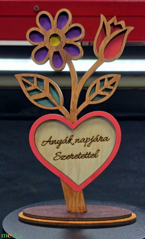 Egyedi fa virágok – Anyák napi ajándék, gravírozott szívvel