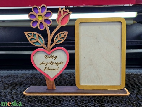 Egyedi fa virágos képkeret – Anyák napi ajándék, gravírozott szívvel