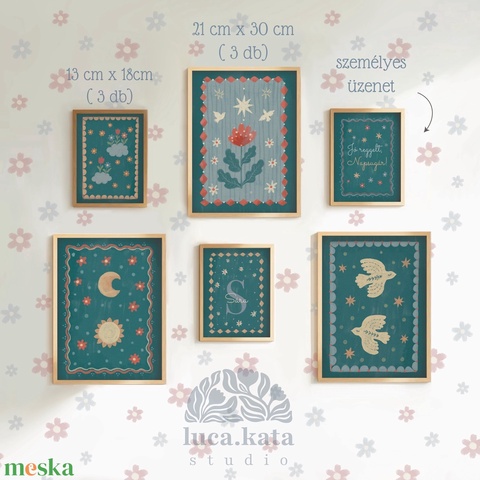 Célom az volt a kollekció tervezésekor, hogy a babák, gyerekek számára egy megnyugtató, varázslatos környezetet jelenítsek meg, amit jó érzés lesz nézegetni nekik a kis gyerekszobai birodalmukban:)