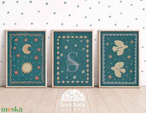 ,,Varázslatos égbolt" személyre szóló 3 db-os illusztrációs kollekció, babaköszöntő, keresztelő ajándék