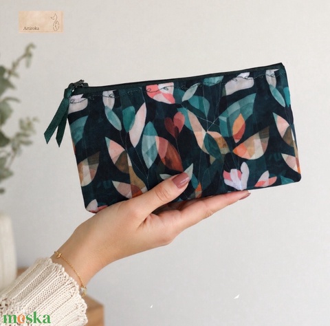 Vízálló tolltartó neszesszer, szemüvegtok liliomfa virág és levelek mintával