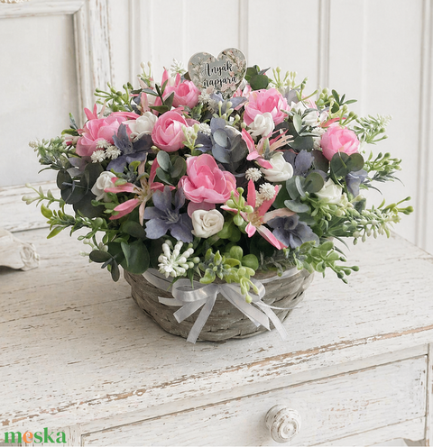 - Anyag/Összetevő kosár, művirág, selyemvirág, szalag