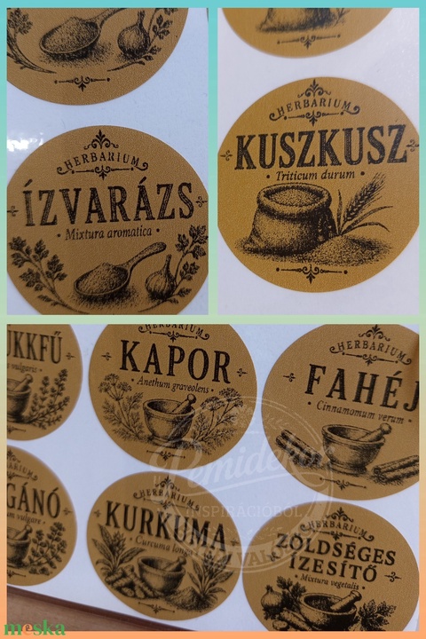 54 db Vintage Herbárium stílusú kraft fűszercimke