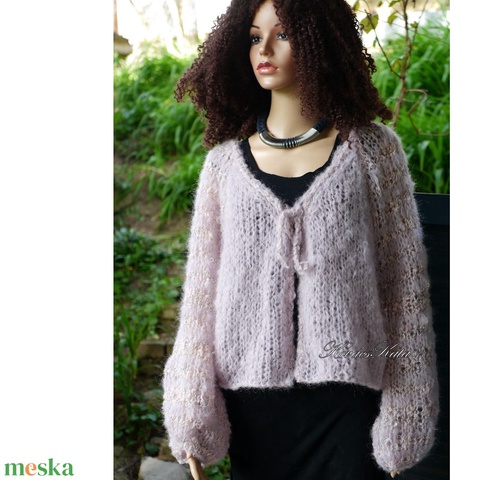 MOLLI KARDI - kézzel kötött túlméretes mohair kardigán, pulóver / púderlila
