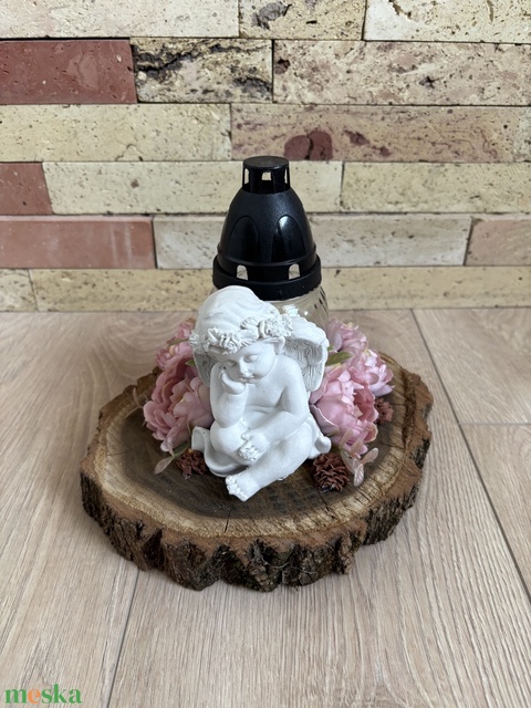 - Anyag/Összetevő fa korong, gipsz angyal, selyemvirág