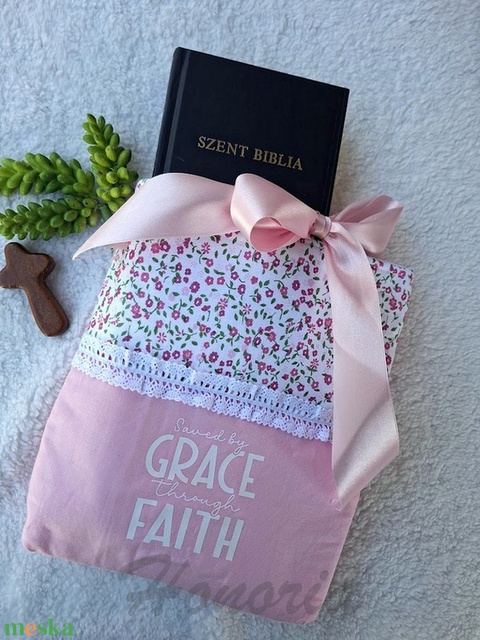 Bibliaborító-könyvtartó-rózaszín masnis-Bibliatartó