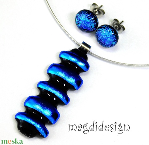Kék csíkos eozinos üvegékszer szett nyaklánc stiftes fülbevaló
