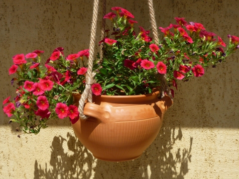 Virágtartó kaspó, kavicsolással díszítve
