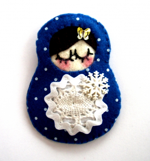pöttyös filc, hópihe gomb, swarovski kristály, farkasfog, csipke