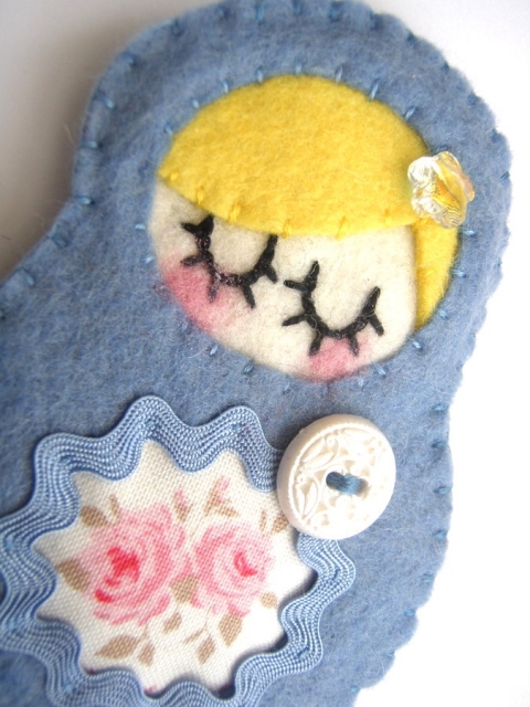 gyapjúfilc, hímző fonal, biztonsági kitűző kapocs, swarovski kristály