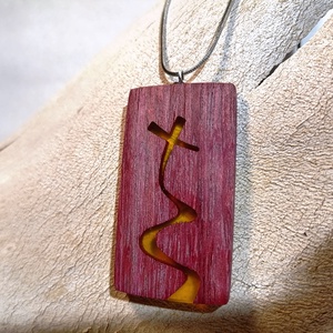 Kereszt Szentlélek ábrázolással, fa medálos zsinórnyaklánc, függő